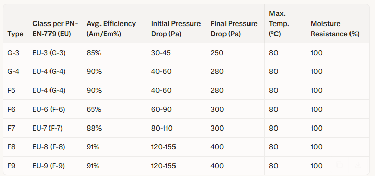 Fine filters (F7, F8, F9)